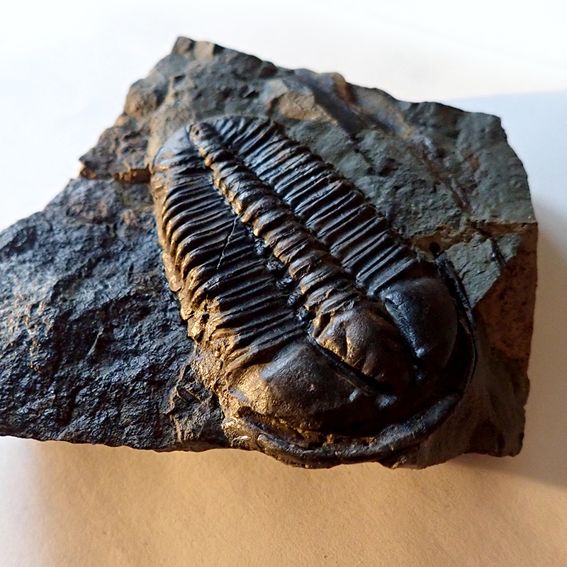 Fotografie pod textem představují naše přírůstky z července 2024. První nález představuje velkého jedince, který se žel nevešel celý na kámen. Druhý nález, bezmála čtyřcentimetrový jedinec, je téměř dokonalou "učebnicovou" ukázkou perfektně zachovalého jedince. Na koláži vidíme i nálezový stav trilobita.